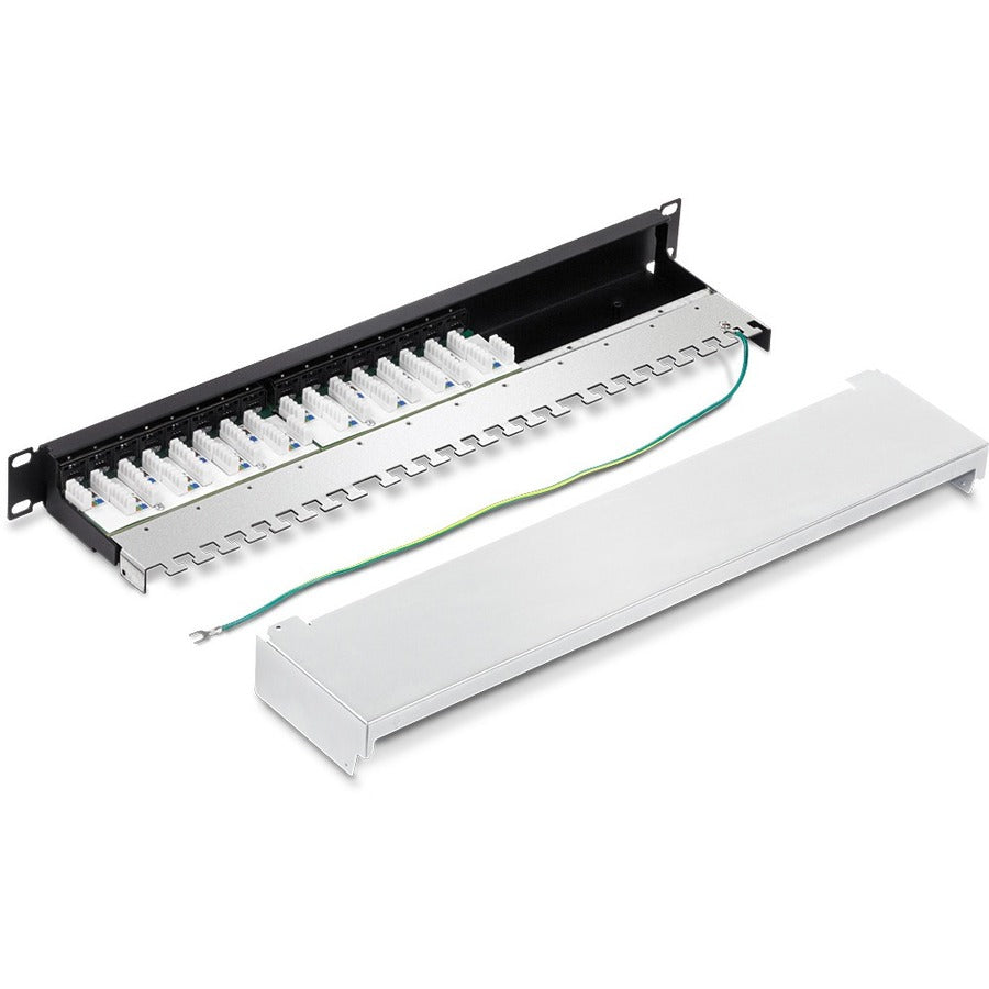 TRENDnet 16-Port Cat6A Shielded Patch Panel, 1U 19" Metal Housing, 10G Ready, Cat5e,Cat6,Cat6A Compatible, Cable Management, Color-Coded Labeling for T568A and T568B Wiring, Black, TC-P16C6AS - TC-P16C6AS
