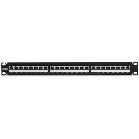 TRENDnet 24-Port Cat6A Shielded Patch Panel, 1U 19" Metal Housing, 10G Ready, Cat5e,Cat6,Cat6A Compatible, Cable Management, Color-Coded Labeling for T568A and T568B Wiring, Black, TC-P24C6AS - TC-P24C6AS