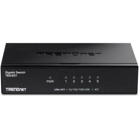 TRENDnet 5-Port Gigabit Desktop Switch, TEG-S51, 5 x Gigabit RJ-45 Ports, 10Gbps Switching Capacity, Fanless Design, Metal Enclosure, Lifetime Protection, Black