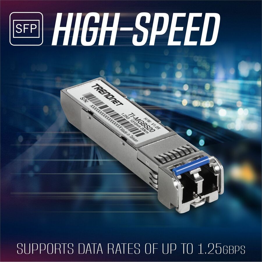 TRENDnet TI-MGBS20, 1000Base-LX Industrial SFP Single- Mode LC Module (20km), Lifetime Protection