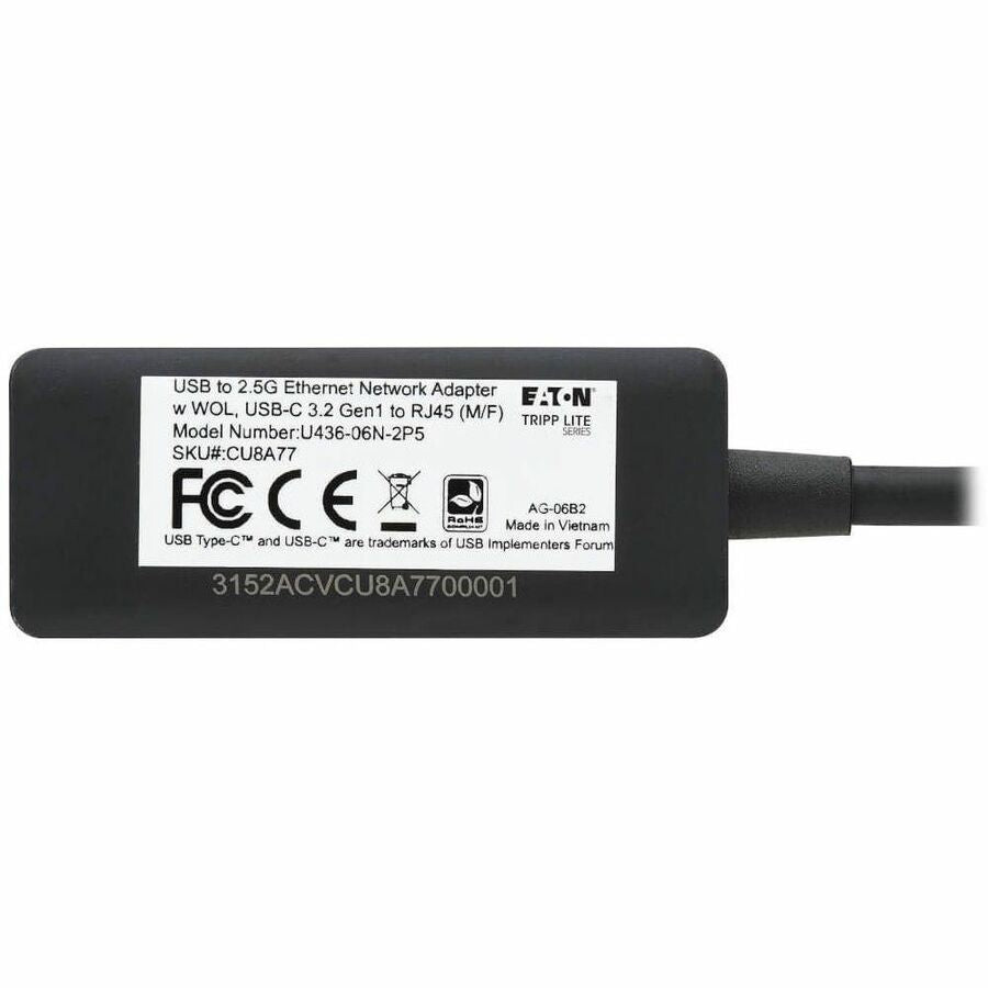 Eaton Tripp Lite Series USB-C to RJ45 Gigabit Ethernet Network Adapter (M/F) - USB 3.2 Gen 1, 2.5 Gbps Ethernet - U436-06N-2P5