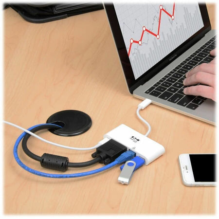 Eaton Tripp Lite Series USB-C Multiport Adapter, VGA, USB 3.x (5Gbps) Hub Port, Gigabit Ethernet and 60W PD Charging, White