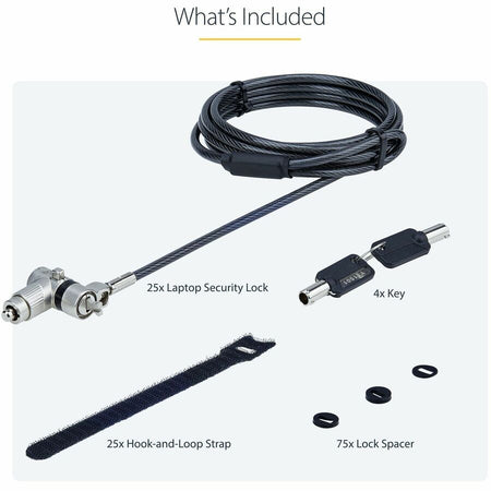 StarTech.com 25-Pack Universal Laptop Lock 6.6ft, Keyed Alike Locking Cable, Security Cable, Compatible w/Noble Wedge®/Nano/K-Slot - UNIVKA25-LAPTOP-LOCK