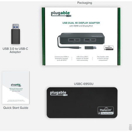 Plugable 4K DisplayPort and HDMI Dual Monitor Adapter for USB 3.0 and USB-C - USBC-6950U