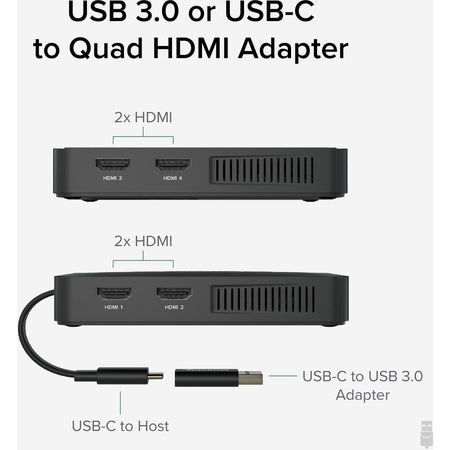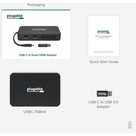 Plugable 4 HDMI Multi Monitor Adapter, USB 3.0 or USB C to HDMI Adapter - USBC-768H4