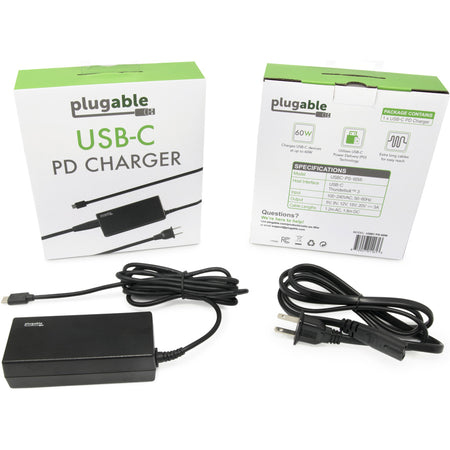 Plugable USB C Laptop Charger with 60W PD - USBC-PS-60W