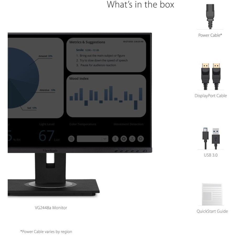 ViewSonic VG2448A 24 Inch IPS 1080p Ergonomic Monitor with Ultra-Thin Bezels, HDMI, DisplayPort, USB, VGA, and 40 Degree Tilt for Home and Office - VG2448A