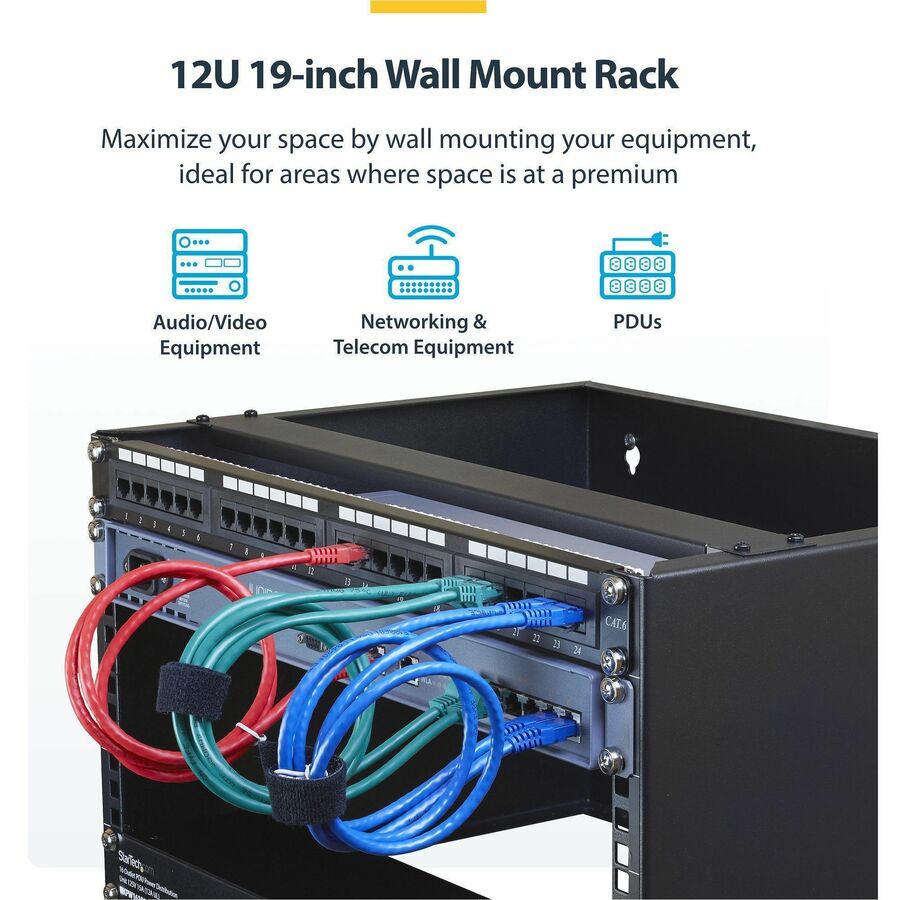 StarTech.com 12U Wall Mount Rack, 14in Deep, 19 inch Wall Mount Network Rack, Wall Mounting Patch Panel Bracket for Switch/IT Equipment