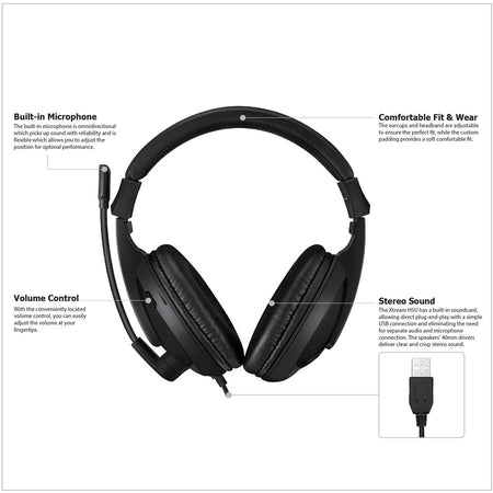Adesso Xtream H5U - USB Stereo Headset with Microphone - Noise Cancelling - Wired- Lightweight - XTREAM H5U