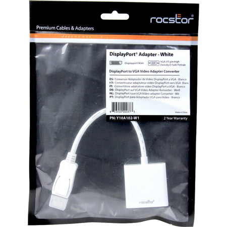 Rocstor DisplayPort to VGA Video Adapter Converter - Cable Length: 5.9" - Y10A102-W1