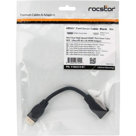 Rocstor Premium 6in High Speed HDMI Port Saver Cable M/F - Ultra HD 4k x 2k HDMI Cable - HDMI - 1 x HDMI Female - 1 x HDMI Male - Black Extension Cable - Y10A214-B1