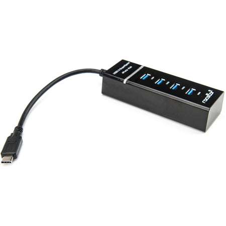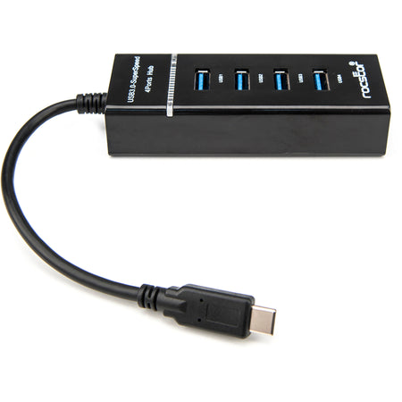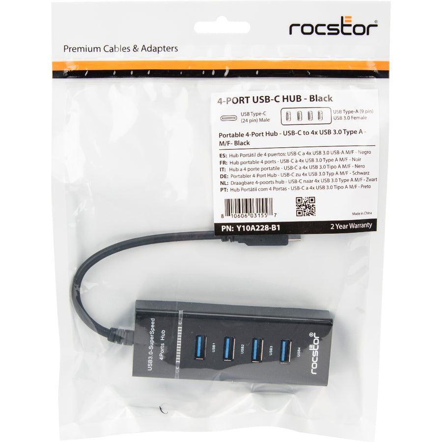 Rocstor Premium Slim Portable 4 Port Hub - USB-C to 4x USB-A Slim Hub - USB 3.0 Hub - Bus Powered - Black - USB C to USB Type-A Hub - USB Type C - External - USB-C 3.1 to 4 USB Type-A 3.0 Port(s) - Y10A228-B1