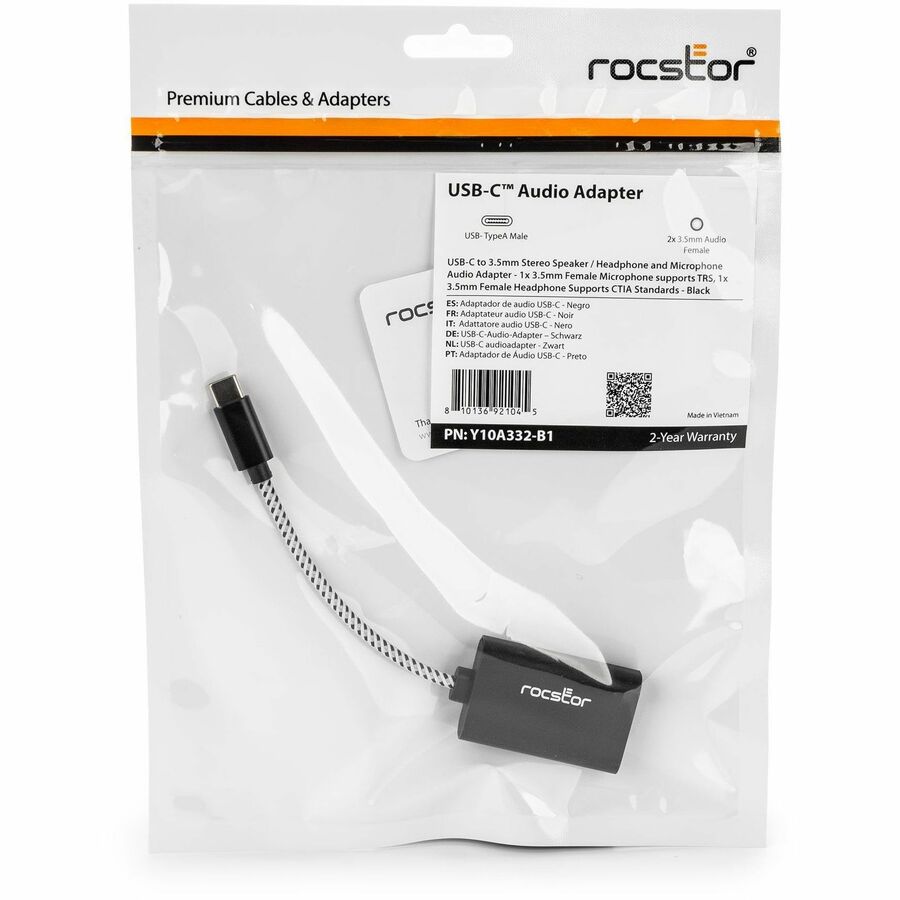 Rocstor Premium USB-C to 3.5mm Stereo Speaker / Headphone and Microphone Audio Adapter - Y10A332-B1
