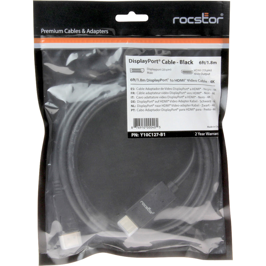 Rocstor Premium DisplayPort to HDMI Converter Cable - 6 ft - 4K - 1 Pack - Y10C127-B1