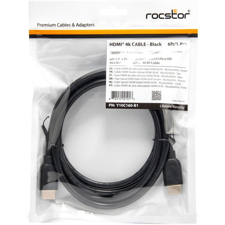 Rocstor Premium 6 ft 4K High Speed HDMI to HDMI M/M Cable - Y10C160-B1