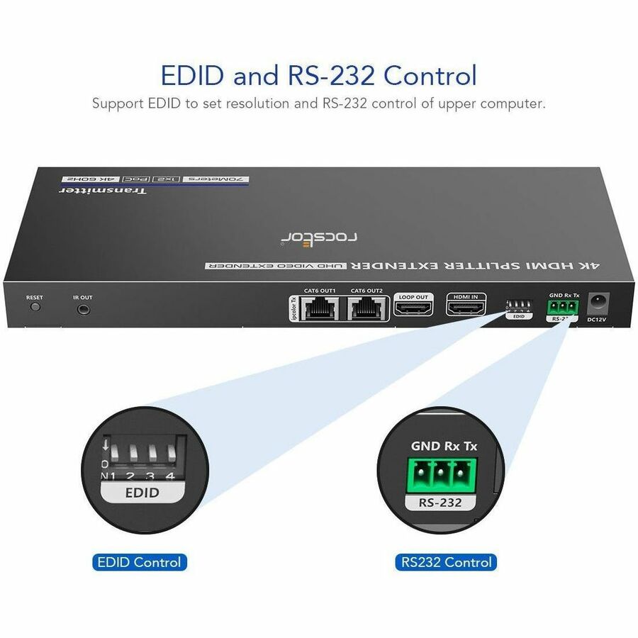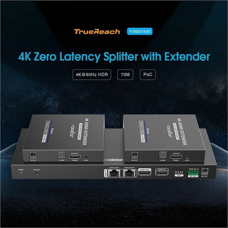 Rocstor TrueReach Splitter with Extender Power over Network 4K@60Hz 1x2 HDMI