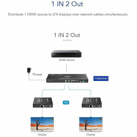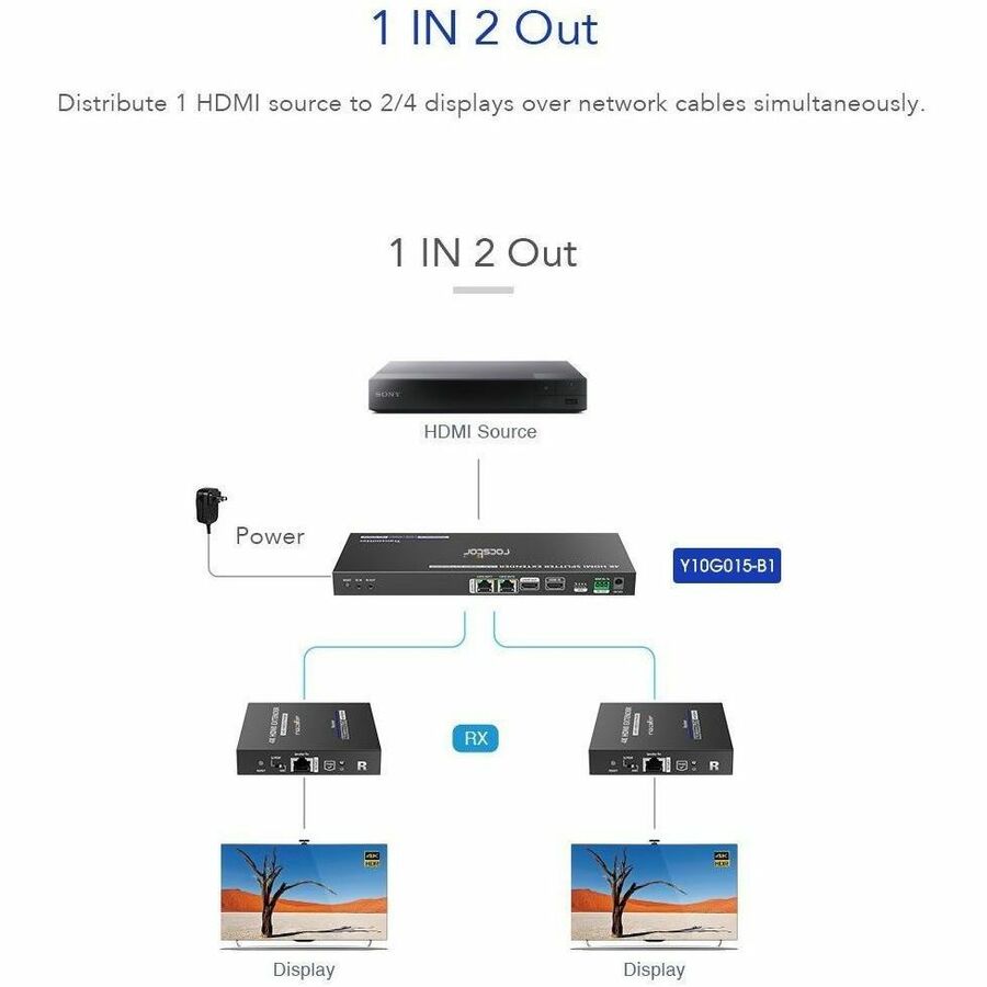 Rocstor TrueReach Splitter with Extender Power over Network 4K@60Hz 1x2 HDMI - Y10G015-B1